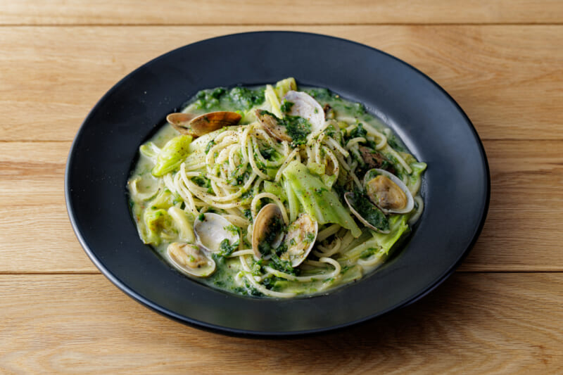 あさりと生海苔と春キャベツのパスタ